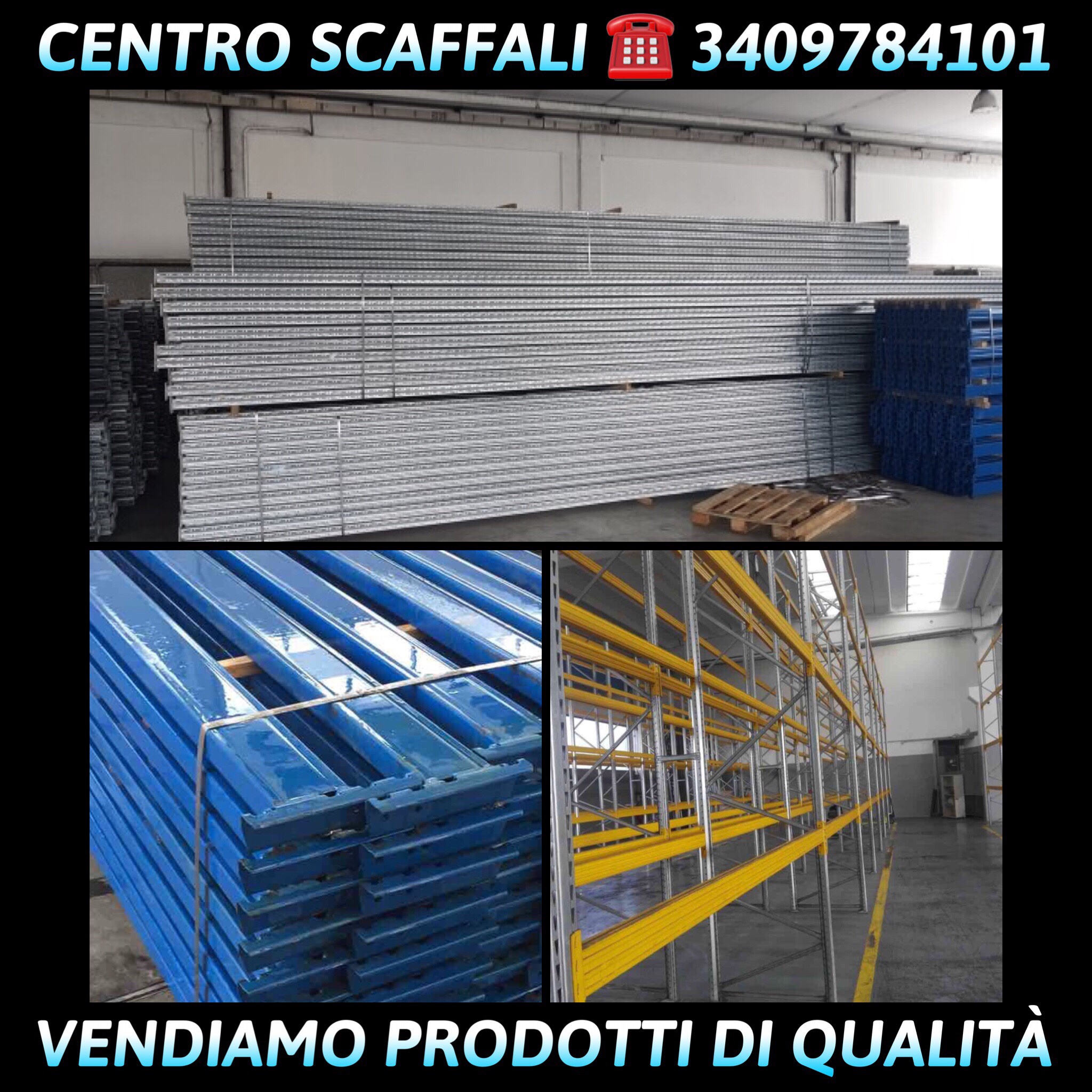 CENTRO SCAFFALI: VENDIAMO LA MIGLIORE MERCE D’Italia FORNENDO PRODOTTI DI ALTA QUALITÀ CERTIFICATI, DISPONIAMO DI LOTTI IN PRONTA CONSEGNA COME : 1200 spalle h 6000×1000 e 2400 lunghe 2700 portata 2400 kg